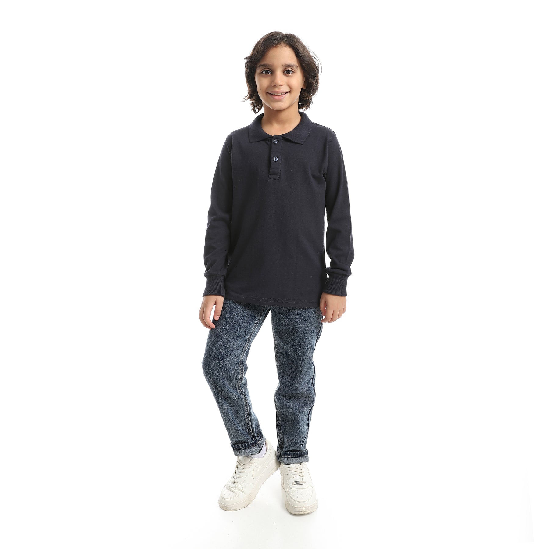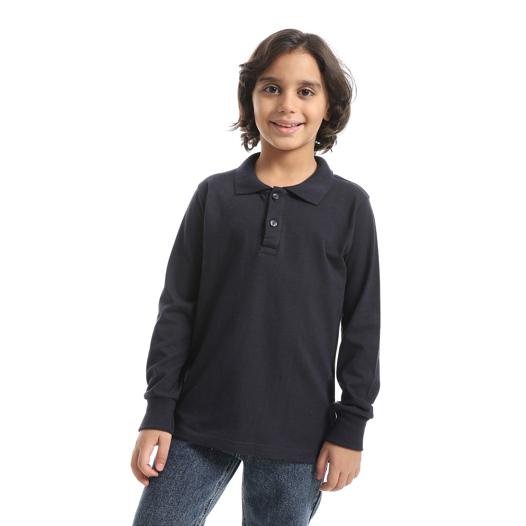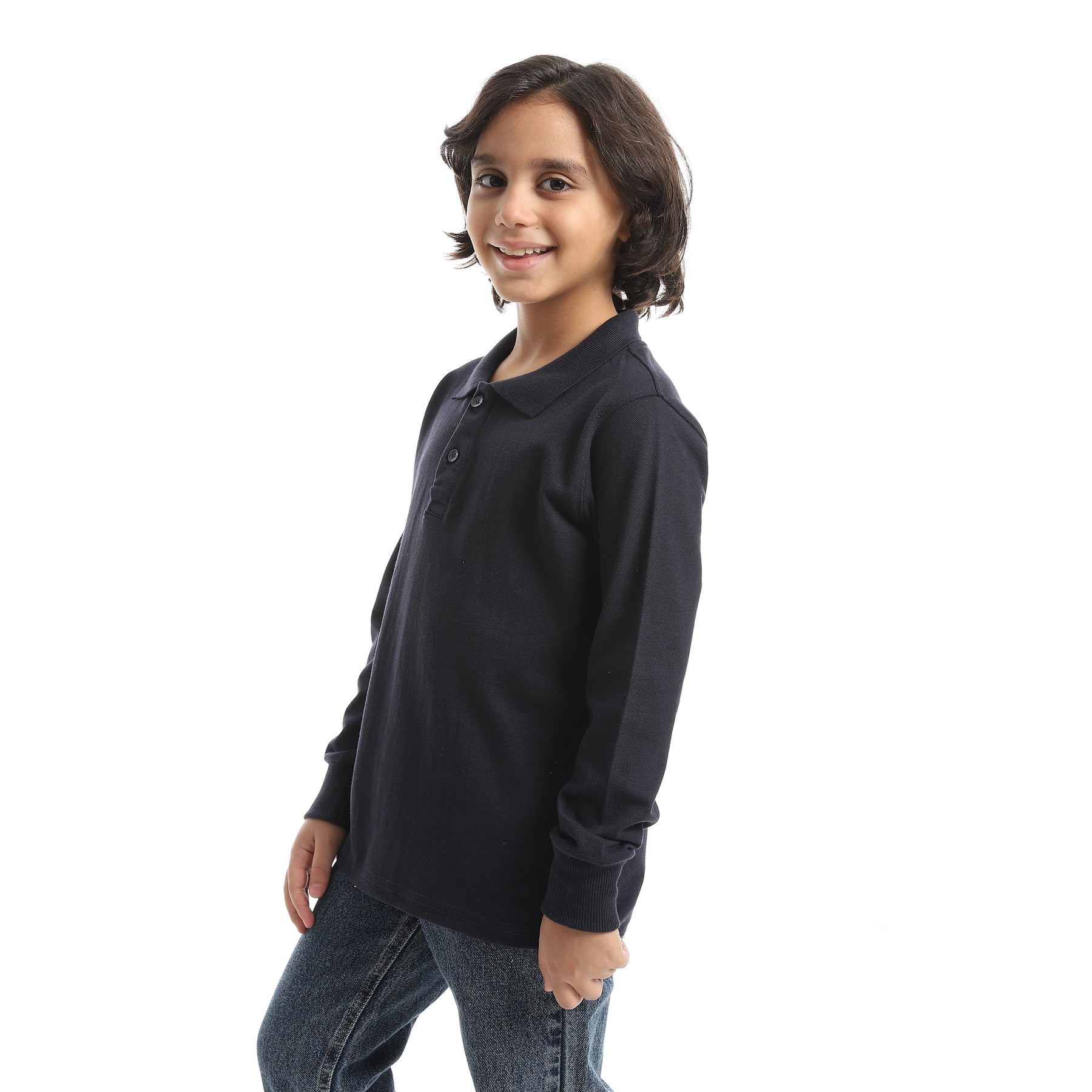 Boys' Polo Shirt with Collar and Long Sleeves