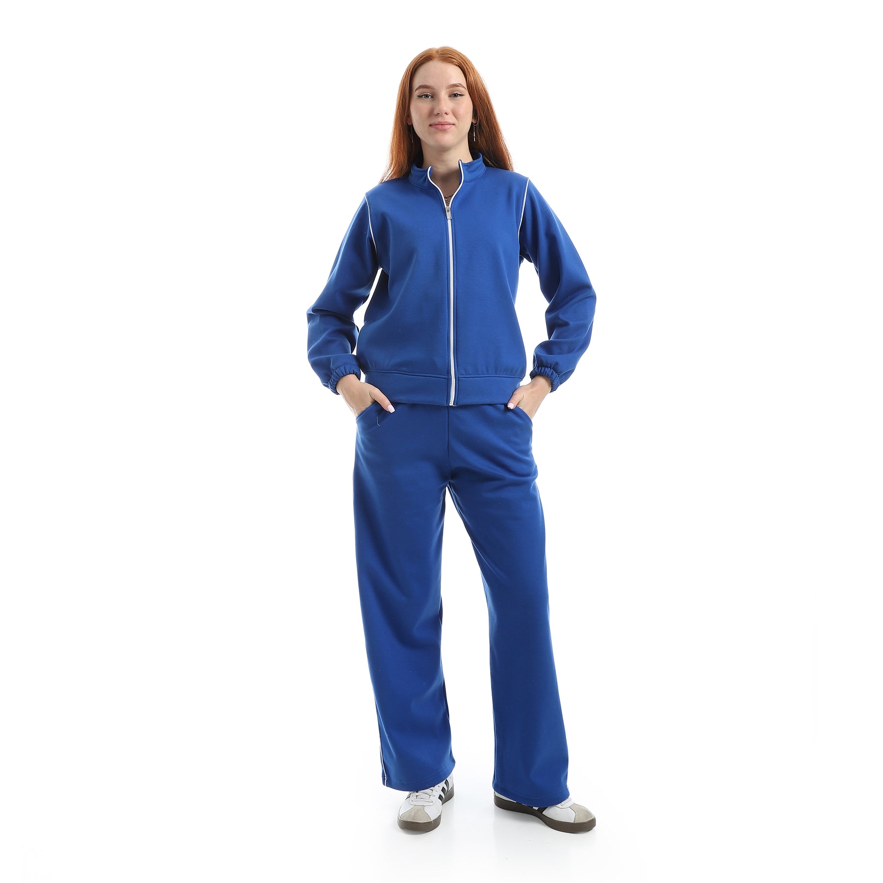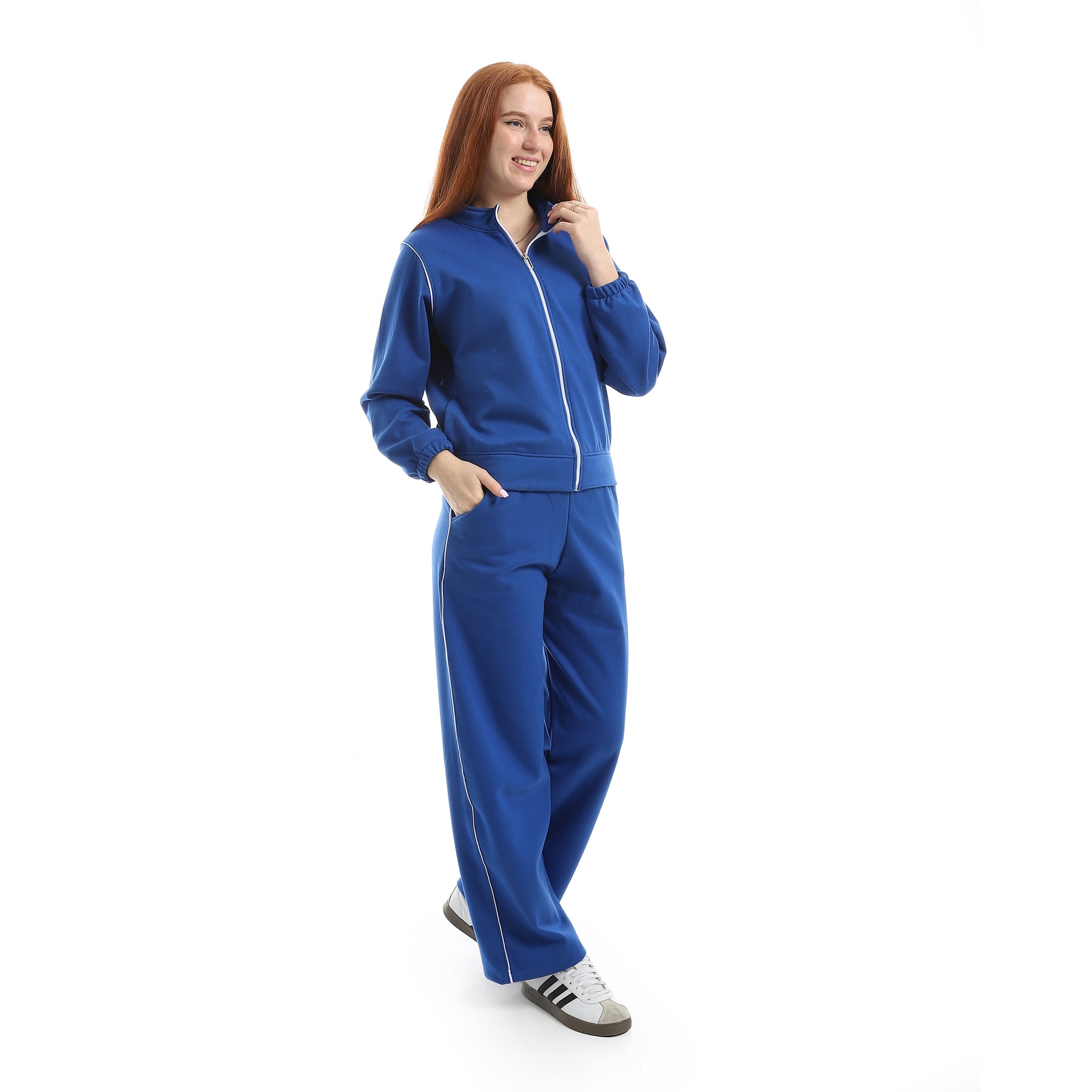 Women's Melton cotton tracksuit with a velvet lining and front zipper