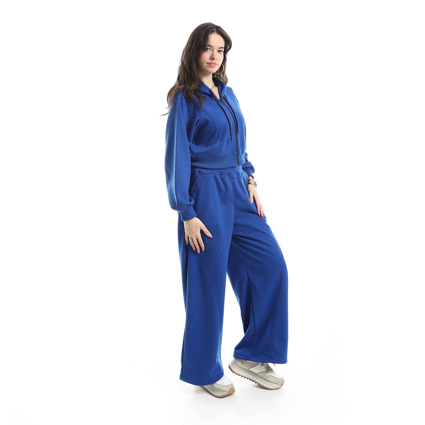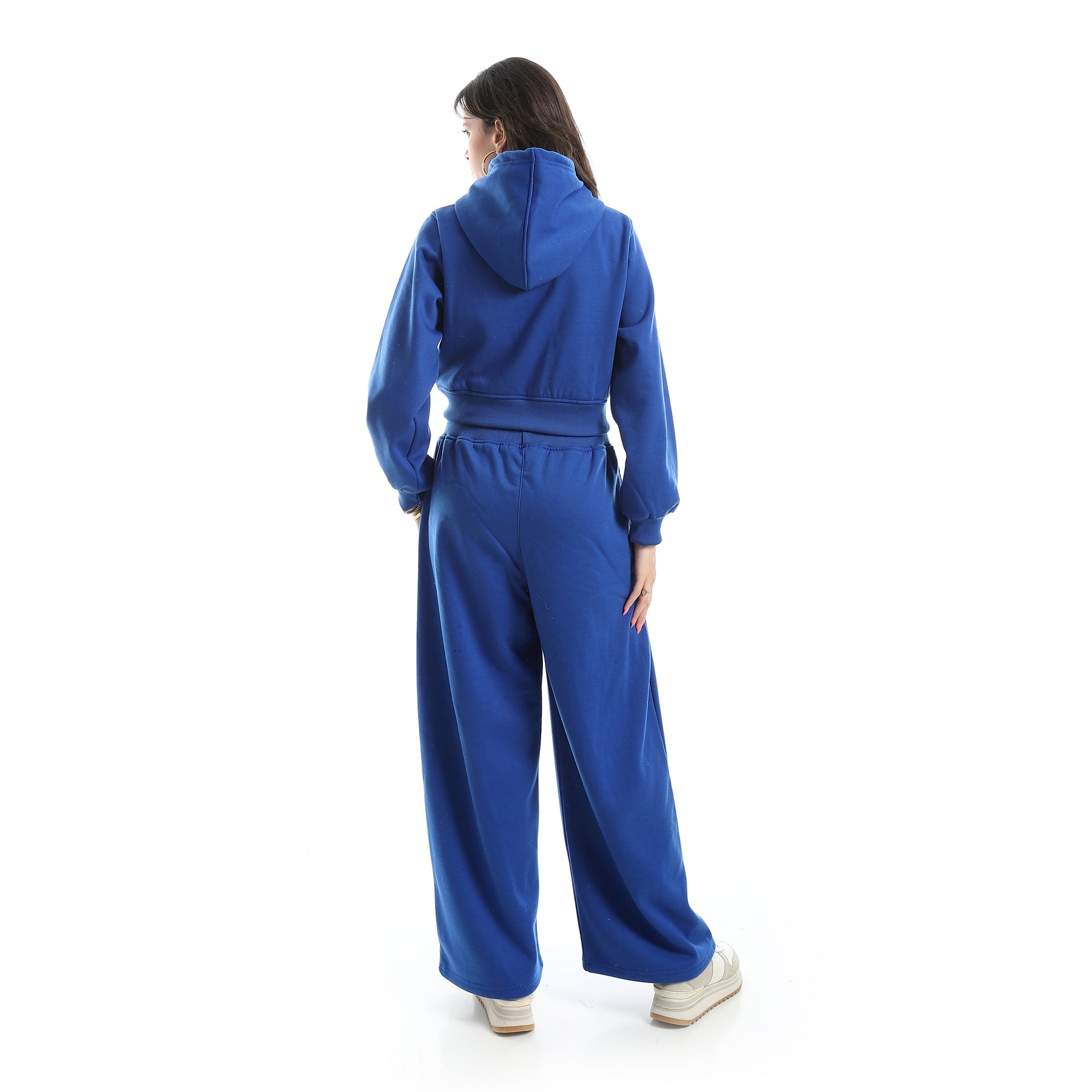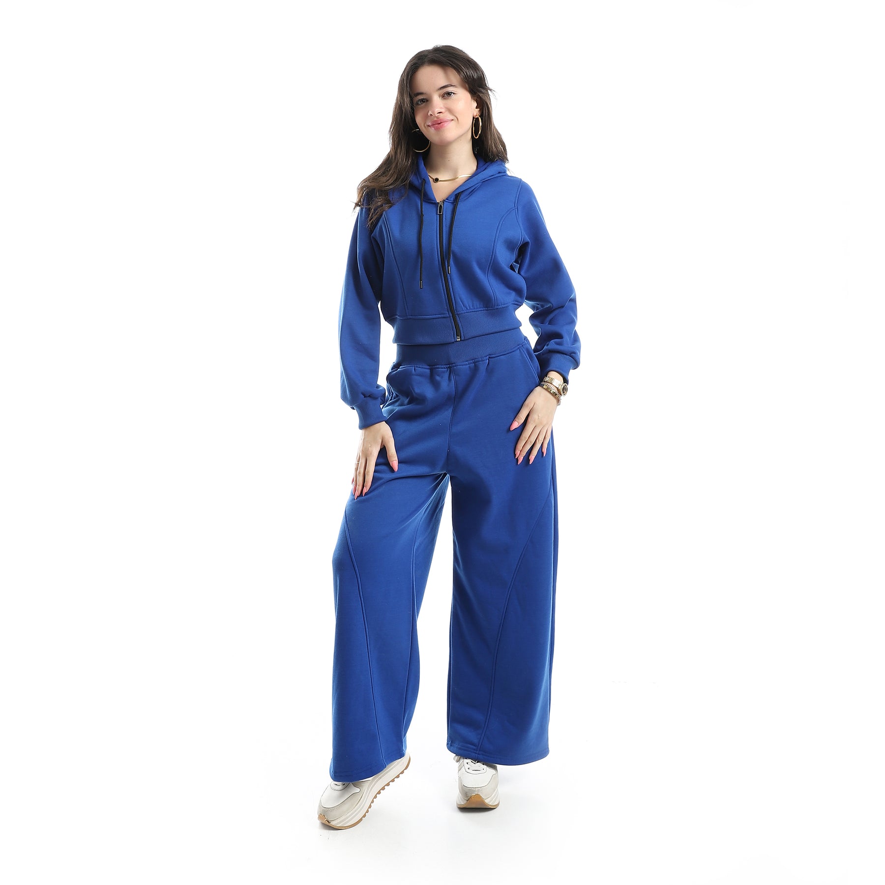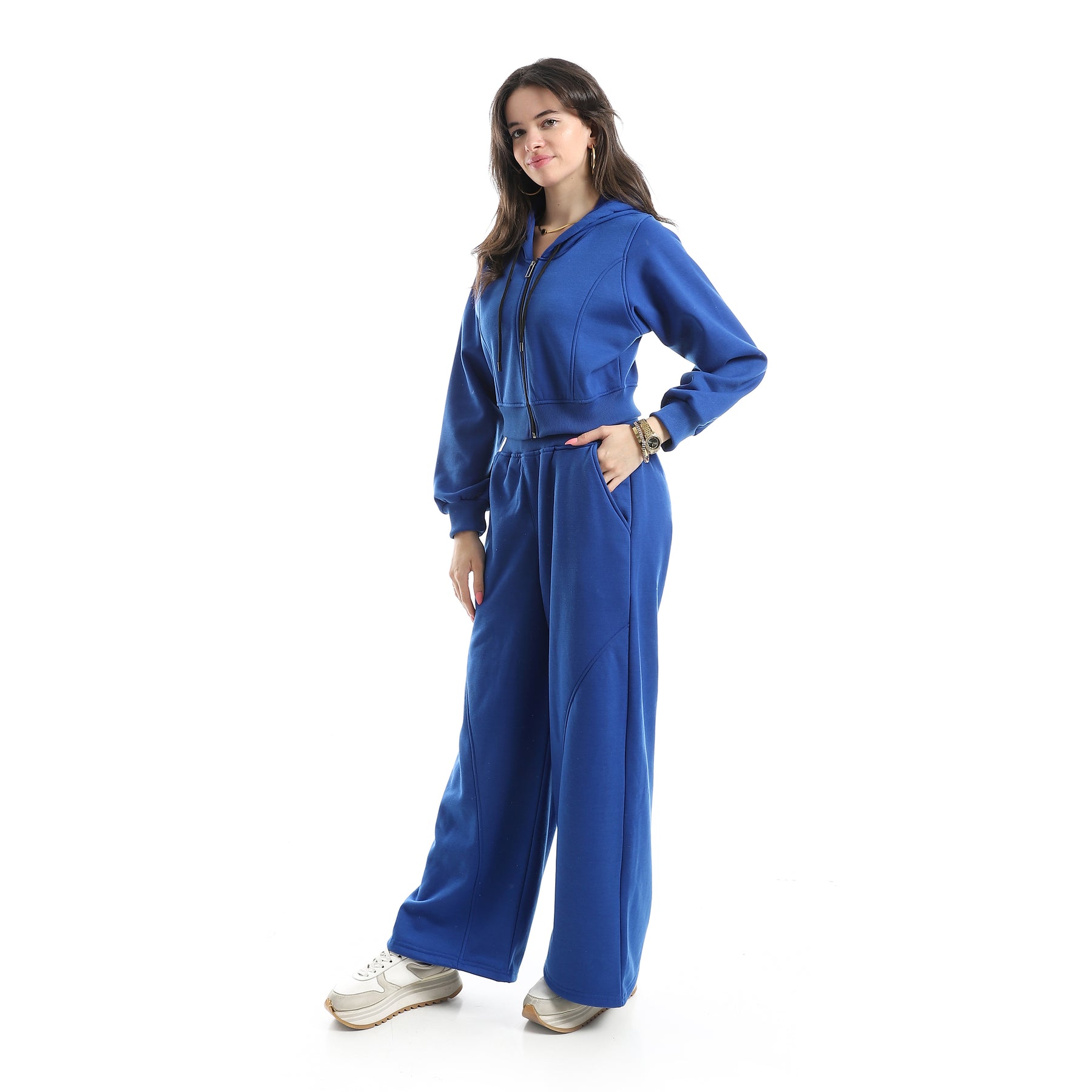 Women's two-piece Melton tracksuit with front zipper and wide-leg pants