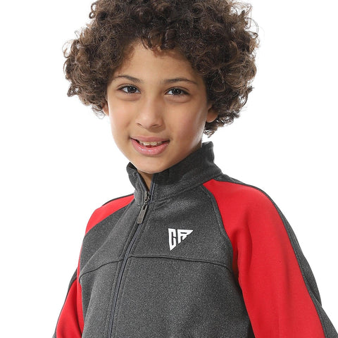 Design: A trendy and stylish boys' sports tracksuit, consisting of a zip-up jacket and matching pants.